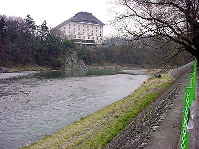 御岳大橋の下。川はかなり増水している。