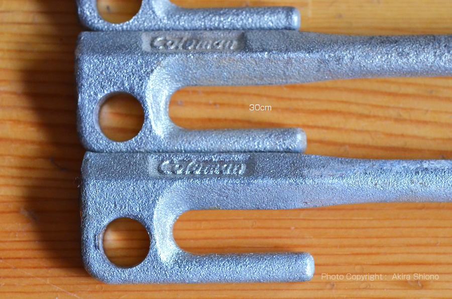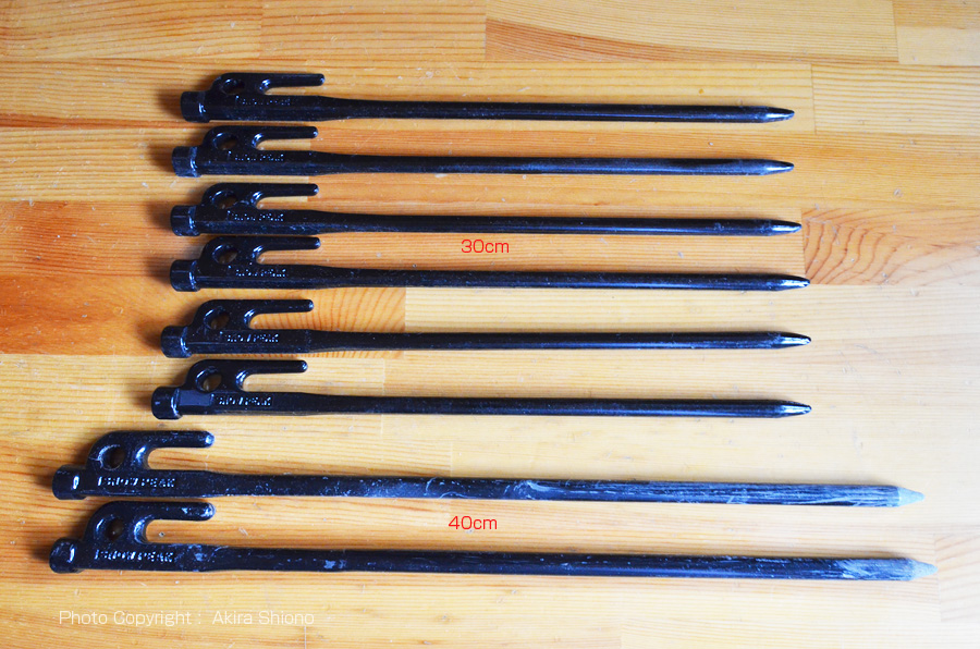 重く、先が尖ったペグは普通の袋では突き抜けたり、破けてしまうことがあります。スノーピークから安全に収納できるケースが販売されています。右上の写真にありますように、40cmのペグを収納する箇所と、30cm以下のペグ(左右2本づつ)計4本と重いハンマーの柄が中央に収まるようになっています。布は内側に防水加工がされています。フタはマジックテープでしっかりと留り今までフタが外れたことはありません。本体価格は1,500ですが安心して持ち運びが出来る優秀なケースと思っています。 調理台・バーナーを見る 調理用具を見る 移 動: 地面別のペグ選び 万能な金属製ペグ 夜間にテントサイト周辺を安心して歩けるグッズ ペグ・ハンマーケース 大型ランタン 野外用LPコンロ LPガスの特性 リンク: ビンテージCOLEMANランタン 1/2Comenan200A ホワイトガソリングッズ 夜のアウトドア・グッズ ナイスなグッズ キャプテンチェアーの修理 ガソリンランタン ガソリンストーブ 便利なLPガス機器 地面に合わせたペグ選び