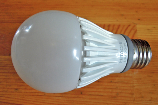 2011.6.19からLED電球を使い始めました。それまでは消費電力の少なさから電球型蛍光灯が白熱電球に取って代わりました。いまではLEDタイプが主流になっています。日本製の一流メーカー品では三千円をを越える物が現在でも販売されています。発売された当初に電球型蛍光灯の点灯時の暗さが我慢出来ずにまず二千円以下の物を手に入れました。この電球の形は独特で放熱のフィン(ひだ)が付いていました。詳しい事は良く判りませんが小1時間点灯してソケットの上のフィン部分を触ってみるとかなりの高温になっています。お分かりの通りこのフィンは放熱のためのヒダなのです。交流から直流に変換する回路などから出るジャンクション熱を放熱しないと寿命が短くなるようです。 LED電球も様々な形があります。また、発売当初は発行部分がドーム型が多く、どうしても口金方向が暗くなってしまい、今までの電球に比べると違和感がありました。最近は今までの電球の照射角に近い「全方向型」なども価格が下がってきています。直下型は天井などに光が回らないため、暗くなりますので用途に応じて選ぶようになります。 2014.3.22/広配光型LED電球 トップへ