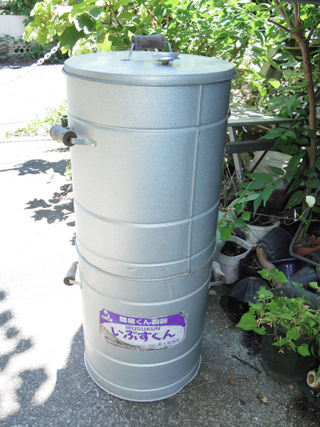 写真にありますように、このスモーカーで熱源のストーブを使わずにスモークウッドに着火して使用してみました。この円筒状のものは密閉されていますので、スモークウッドを使用時に、火が消えることが度々ありました。再び着火するには、乗せ網、食材などすべて取り出さなけれいけなく面倒です。消えたウッドの再着火が難しいでスモーカーは扉式の方が便利と思いました。